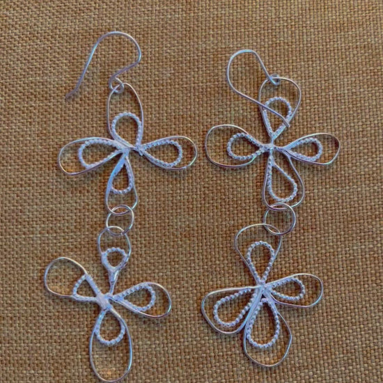 Sterling silver handcrafted filigree flower earrings. Two inches long and one inch wide. Beautiful for any occasion.