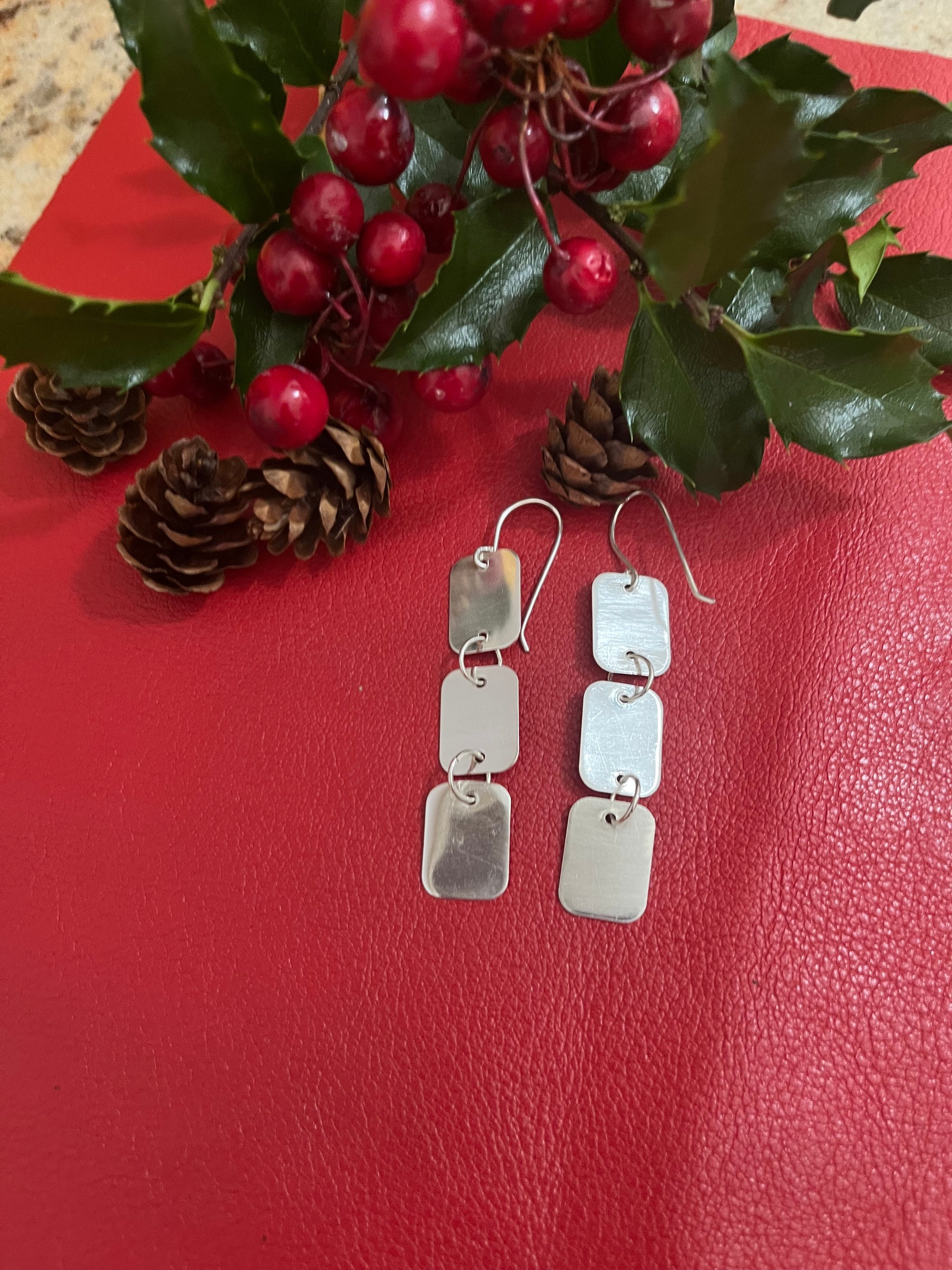 Rectangular chandelier earrings. 2.5 inches long and dangling. A real statement piece. Elegant, fashionable. Fish hook post. Sterling silver. Great for the holidays or a perfect gift for the jewelry lover.